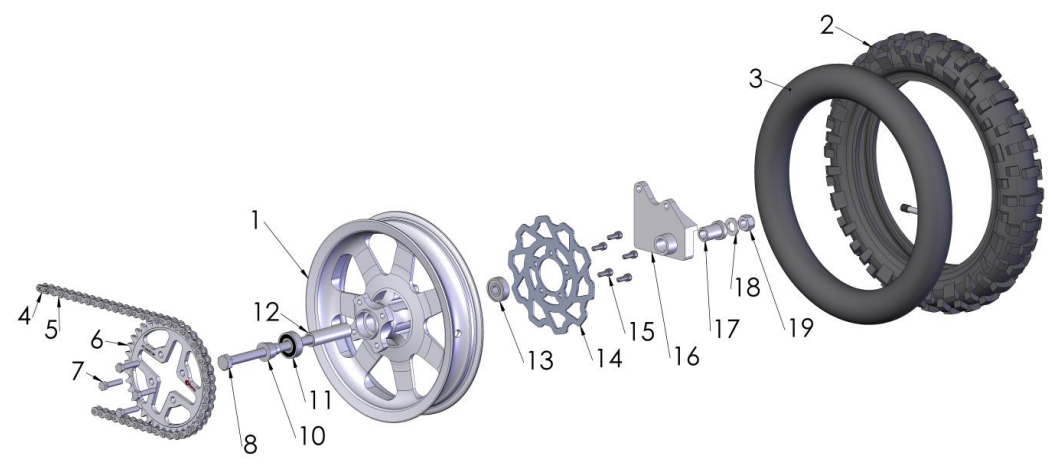 WHEEL REAR 10\" DISC W/BEARINGS